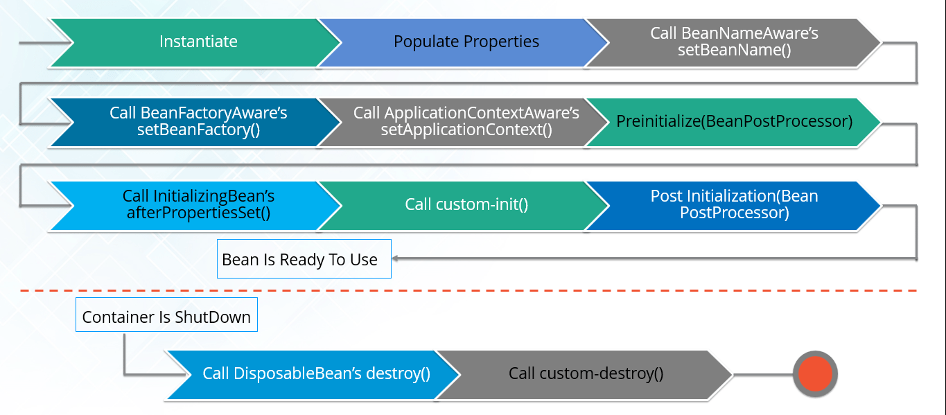 스프링 컨테이너 내에서 빈의 생명주기는 일반적인 자바 애플리케이션에서 보다 조금 더 정교하다.