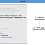 서블릿의 생명주기와 동작 순서를 대략적으로 알아 봤으니 이제 잠깐 미뤄 두었던 ServletConfig에 대해 알아보도록 하겠습니다. Servlet의 init() method를 설명하면서 ServletConfig 객체를 인자로 받는다는 말을 했습니다. ServletConfig 객체는 말 그대로 Servlet에 관한 설정 정보를 서블릿으로 넘겨주기 위하여 사용하는 객체입니다. 서블릿 안에 하드코딩하기를 원하지 않는 정보들이 이 안에 포함됩니다. 이 정보는 배포서술자나 어노테이션 안에 코딩되어 있습니다. 컨테이너는 이 정보를 이름-값 쌍의 문자열 객체로 읽어들이게 됩니다. 여기서는 adminEmail 정보가 저장되어 있는데요. init() method 안에서 초기화 된 이후에는 이 정보를 getServlet..